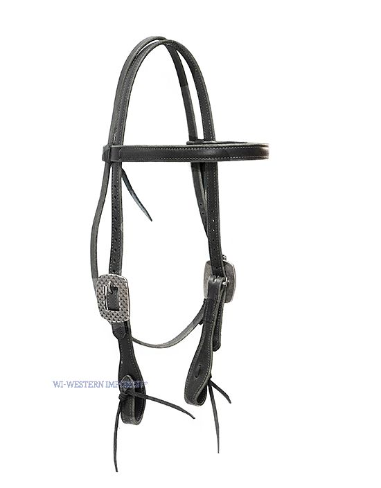 Schwarzes Kopfstück aus weichem Latigo Leder . Mit "Rasp-Buckle" .